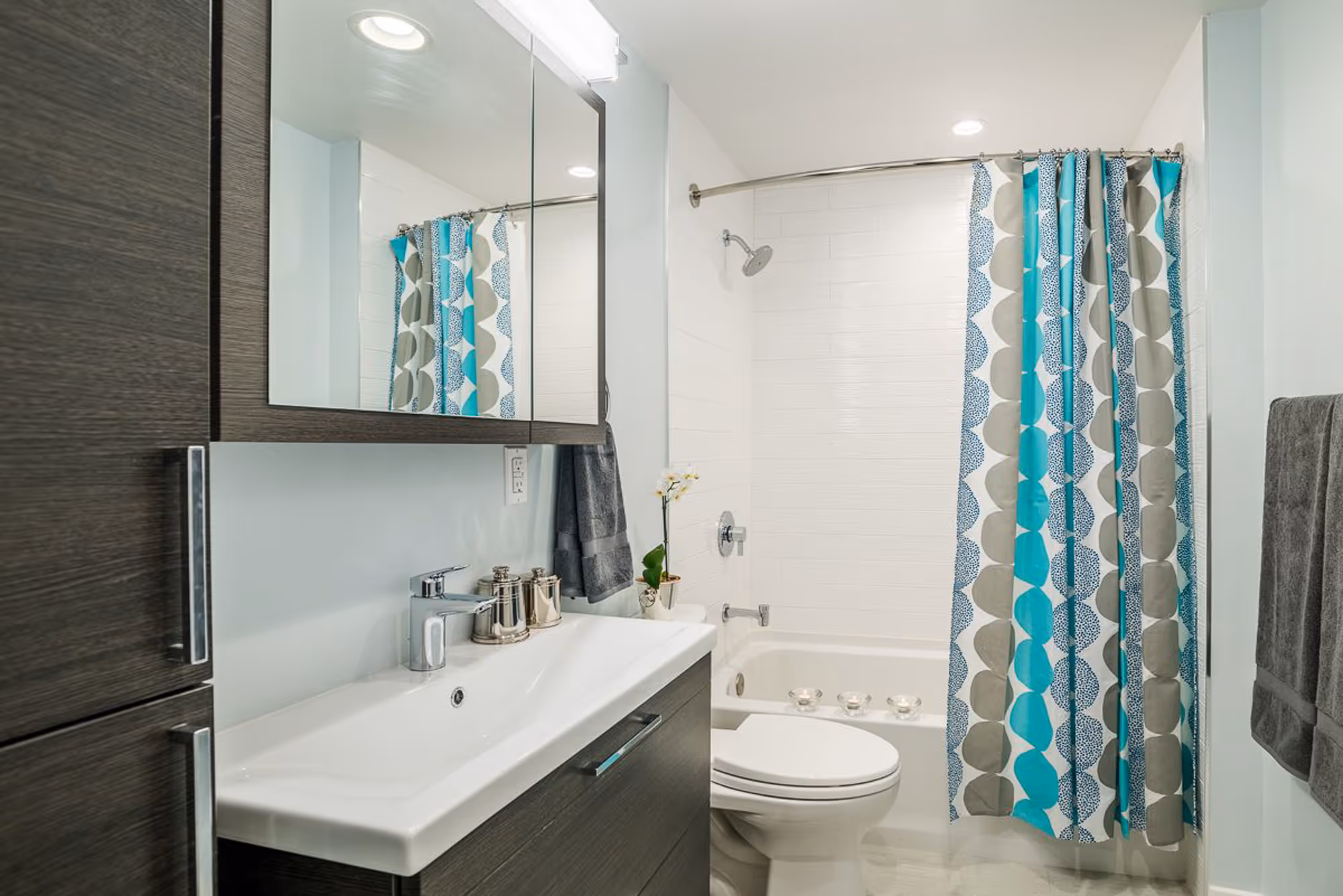Having a relative in a wheelchair necessitated a full remodel of the tiny main floor bathroom. Flipping the locations of the toilet & vanity, adding an in-wall tank toilet, and replacing the bathtub with a walk-in shower totally transformed the bathroom for overnight visits while enlarging the floor space to accommodate a wheelchair.
