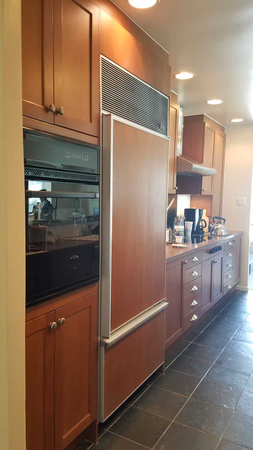 The kitchen was previously remodeled with high-end appliances and European cabinets, but it just didn’t work for my clients. Lack of counter and cooking space were major issues for the new residents. It was time to revamp of the kitchen layout and change color schemes in the kitchen and bathrooms.